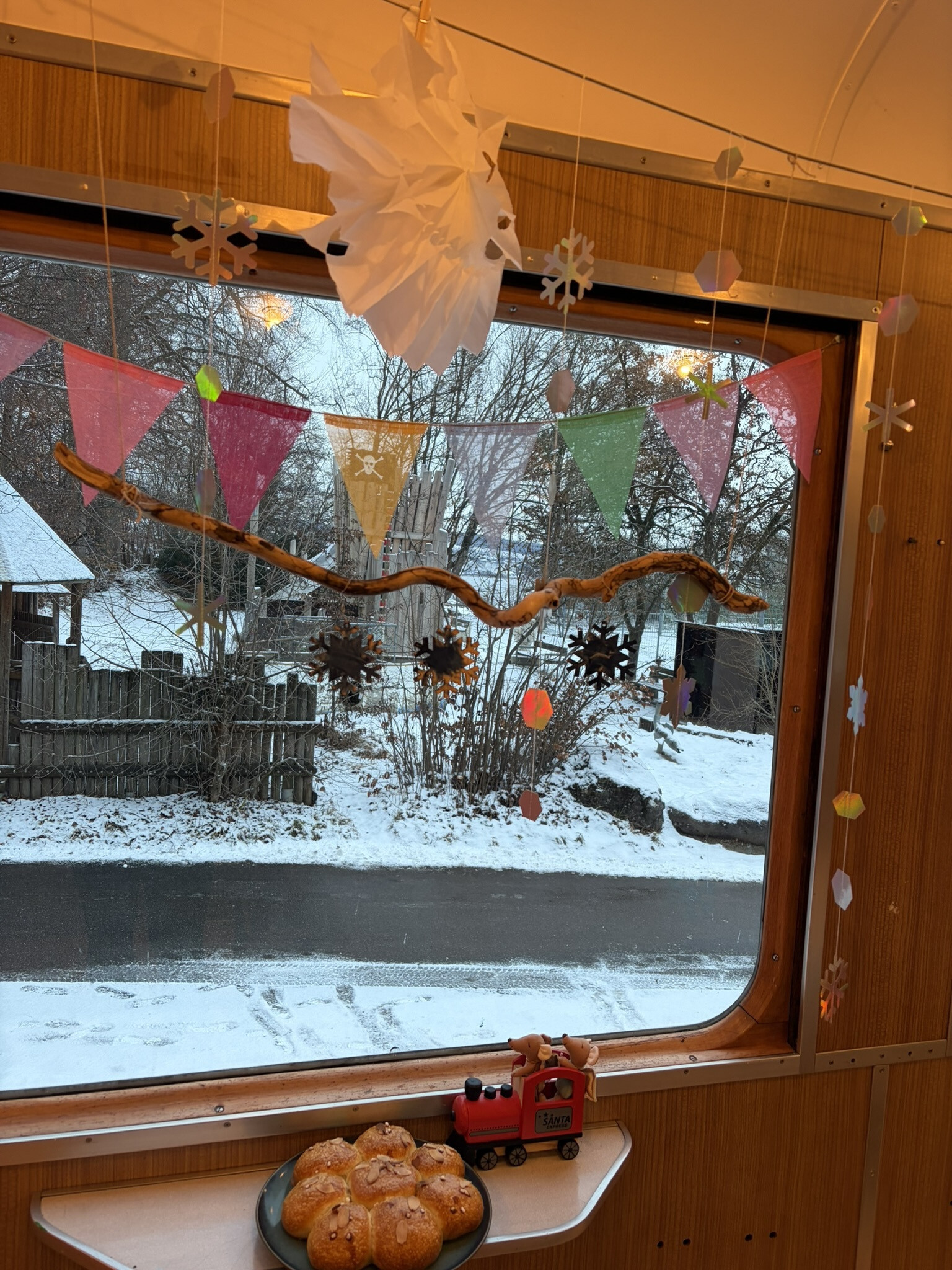 Der Bahnwagen "Loki Emma" bietet ein abwechslungsreiches und kinderfreundliches Ambiente. Wir sind regelmässig draussen und im Wald.